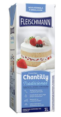 Ingredientes Chantilly Tradicional: Água gordura vegetal de palmiste interesterificada, açúcar, caseinato de sódio, sal, umectante: sorbitol. estabilizante: hidroxipropilcelulose, emulsificantes: esteraroil-2-lactil-lactato de sódio, mono e diglicerídeos de ácido graxos, lecitina de soja e ésteres de ácido diacetil tartárico e mono e diglicerídeos, regulador de acidez: fosfato dissódico e aromatizante. ALÉRGICOS: CONTÉM DERIVADOS DE LEITE E DE SOJA. PODEM CONTER TRIGO. CONTÉM GLÚTEN.